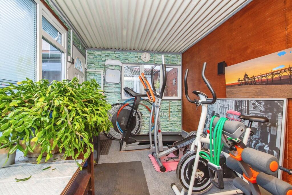 This is a semi-detached bungalow located in Chirton, North Shields. The property offers three bedrooms and two bathrooms, with a total square footage of 1,117.29. The listing price is £148,000. The property includes a garden and an outbuilding that appears to have been converted for use as a gym. While some areas of the property have been modernized, others may benefit from further renovation. The location is residential, with nearby schools and local amenities. The price per square foot is significantly lower than the area average, suggesting good value for money.