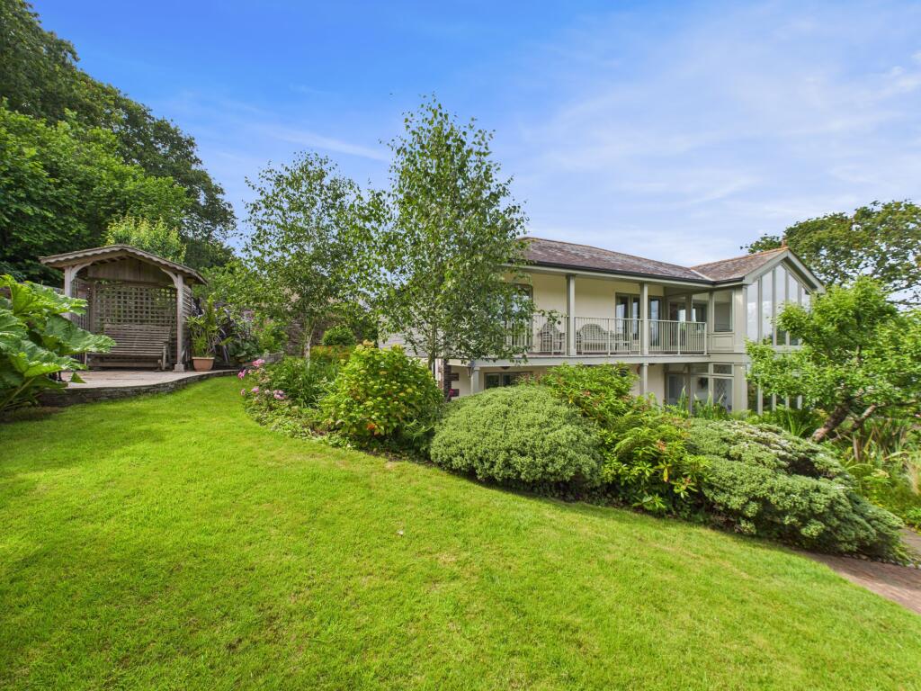 An exceptional detached home with breathtaking country and estuary views, elegant interiors, four double bedrooms, double garage, sun room, garden room, two bathrooms, and extensive landscaped gardens.