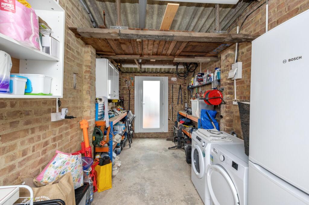 This two-bedroom semi-detached bungalow in Horley, Surrey, presents itself as a well-maintained property with recent modernisation evident in the kitchen and bathroom. The property showcases a modern aesthetic throughout, with a newly fitted kitchen featuring sleek grey cabinets, marble-effect countertops, and up-to-date appliances. The bathroom equally benefits from a contemporary renovation. The living areas appear spacious and well-lit, with large windows and an open-plan layout providing a light and airy feel. The inclusion of a sizeable garden and decked patio area, visible in the provided photos adds to the property’s outdoor appeal.