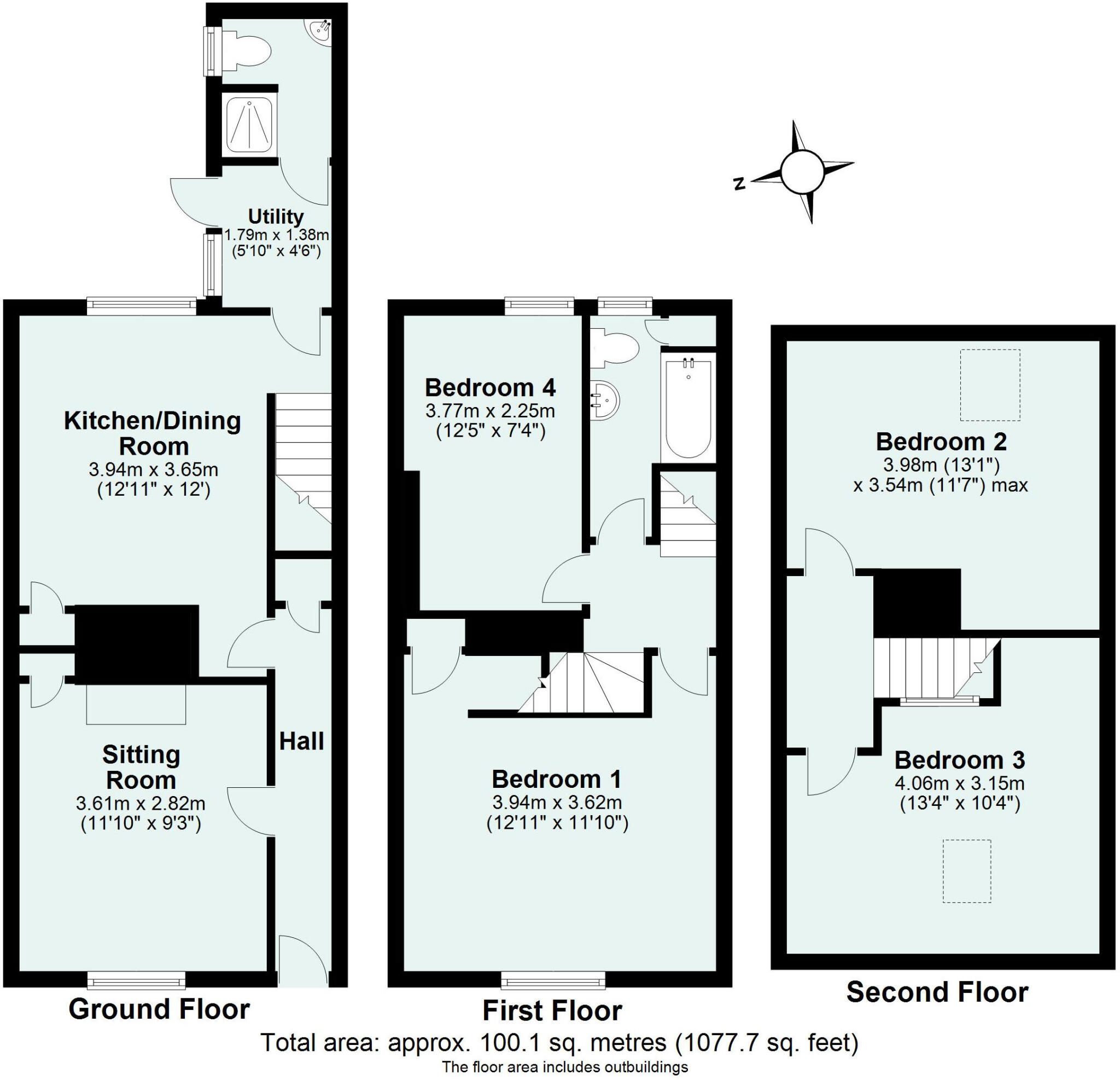 This is a terraced property located on Bampton Street, Tiverton. It features 4 bedrooms and 2 bathrooms, with a total area of 1,077.47 sqft. The property is listed for £105,000, which is significantly below the average price in the area. The property is located close to local schools. The property does require some modernisation.