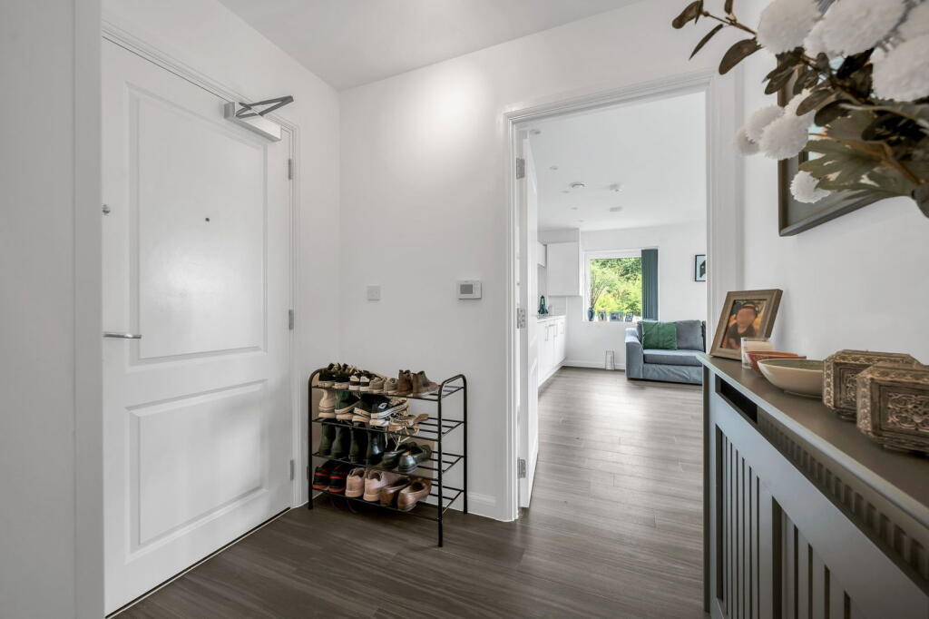 This property is a modern two-bedroom, two-bathroom apartment located in Greenhithe, Kent. The apartment is in excellent condition and benefits from a private balcony with views over a green space. The location is convenient, with nearby transportation links including Greenhithe station, providing easy access to Bluewater shopping centre and central London. There are also several schools within a reasonable distance. The list price of £300,000 is slightly below the average price for the area, and given the modern condition and convenient location, it represents good value for money.