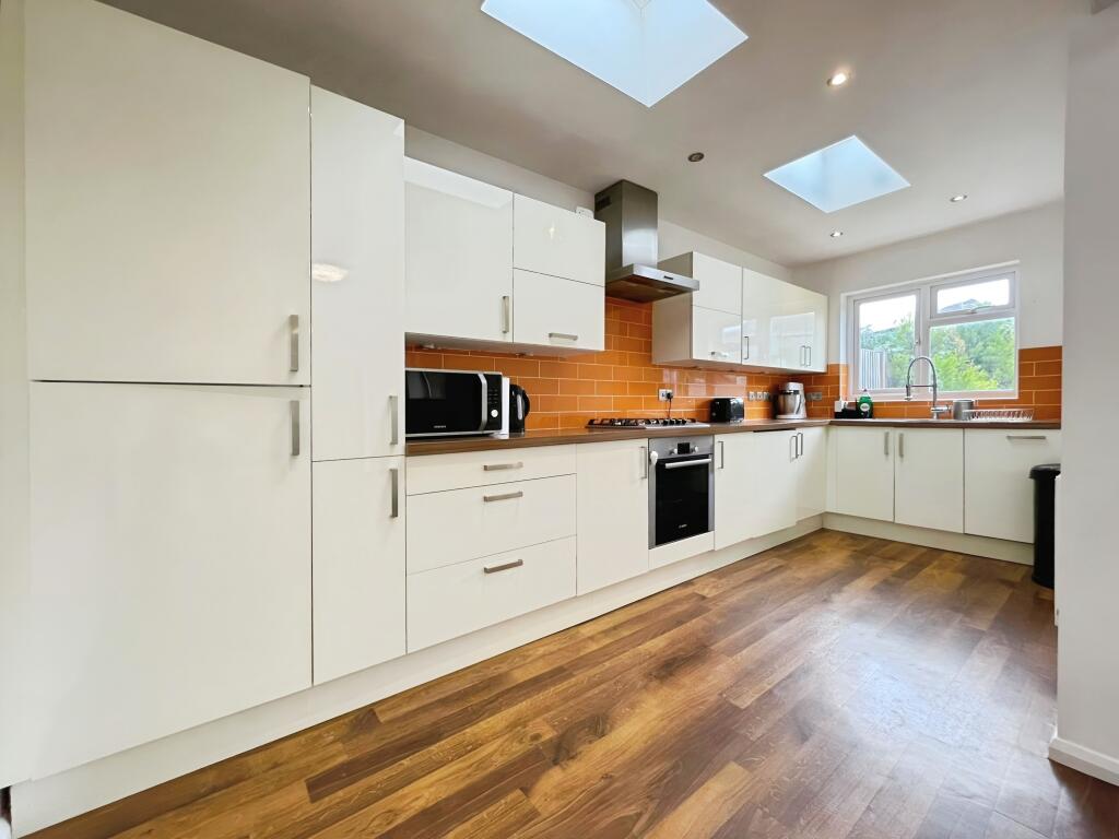 An extended three-bedroom property offering spacious accommodation, garden and parking. Situated in a quiet location with easy access to local schools and amenities. Available now and offered unfurnished.
