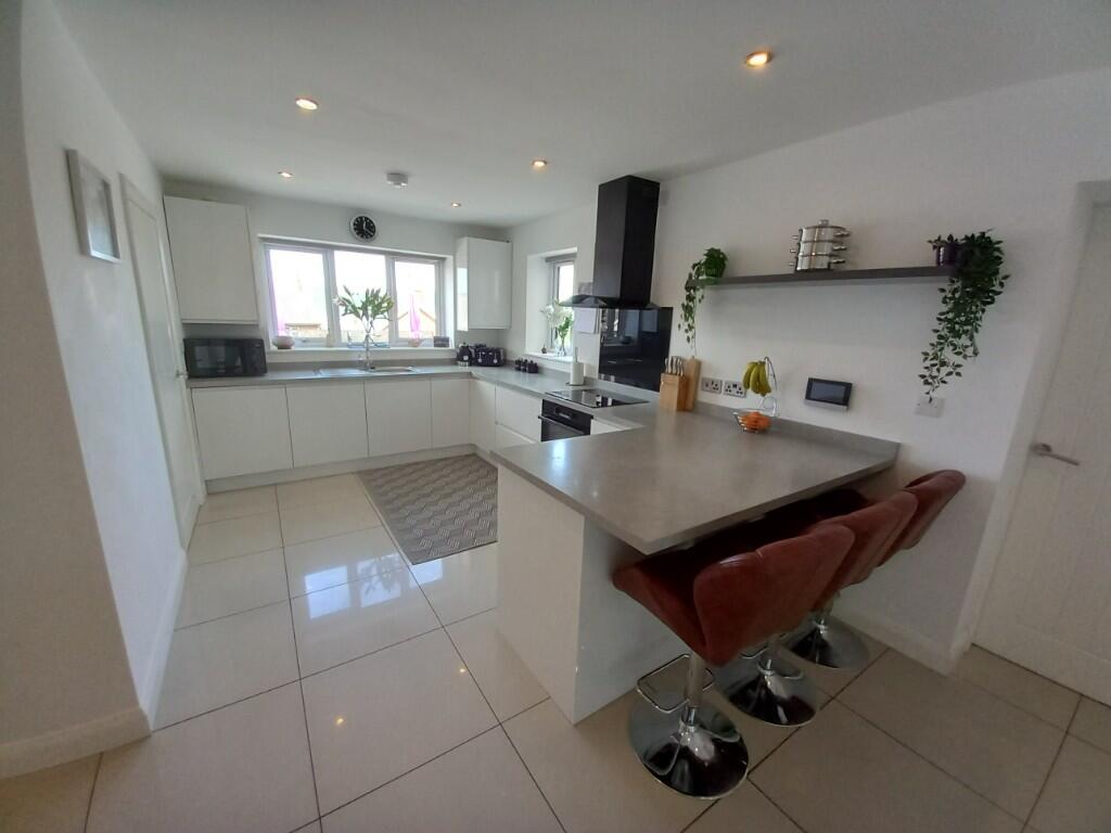 This property is a modern detached house located in Bangor, Gwynedd. It benefits from four bedrooms and two bathrooms, and offers a sizeable plot with a patio and hot tub. The interior is modern and well-maintained, with a contemporary kitchen and open-plan living area. The location is convenient, with nearby schools and transportation links. The property is listed at £459,500, which is higher than the average price for the area, but may be justified given its size, condition, and features. The average price per sqft in the area is £347, while this property is listed at approximately £550 per sqft. This suggests that the asking price is at the higher end of the market.