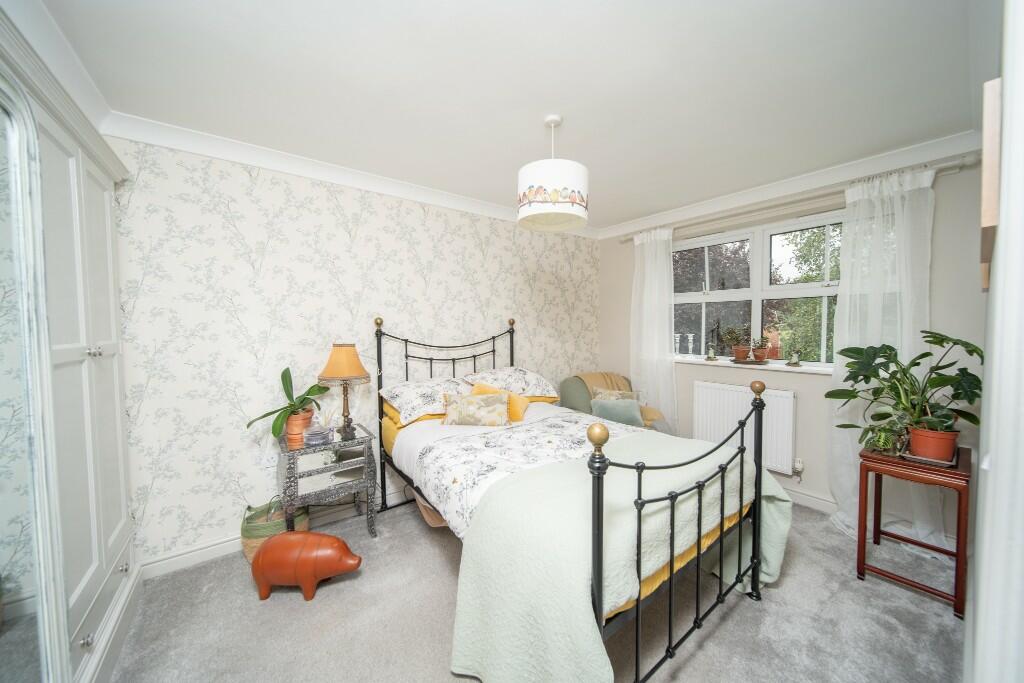 The property includes a substantial garden, which is a desirable feature for many buyers. The garden is well-landscaped and features several mature plants, a patio area, and a shed. The size of the plot is not specified, but the images suggest it is larger than average for the area.