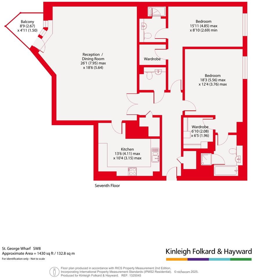 Guide Price of £1,150,000 to £1,200,000. Set on the 7th floor of the iconic St George Wharf development, this elegant apartment offers refined living with two generous en-suite bedrooms, a spacious open-plan reception, and a private balcony with views of the River Thames. This i...