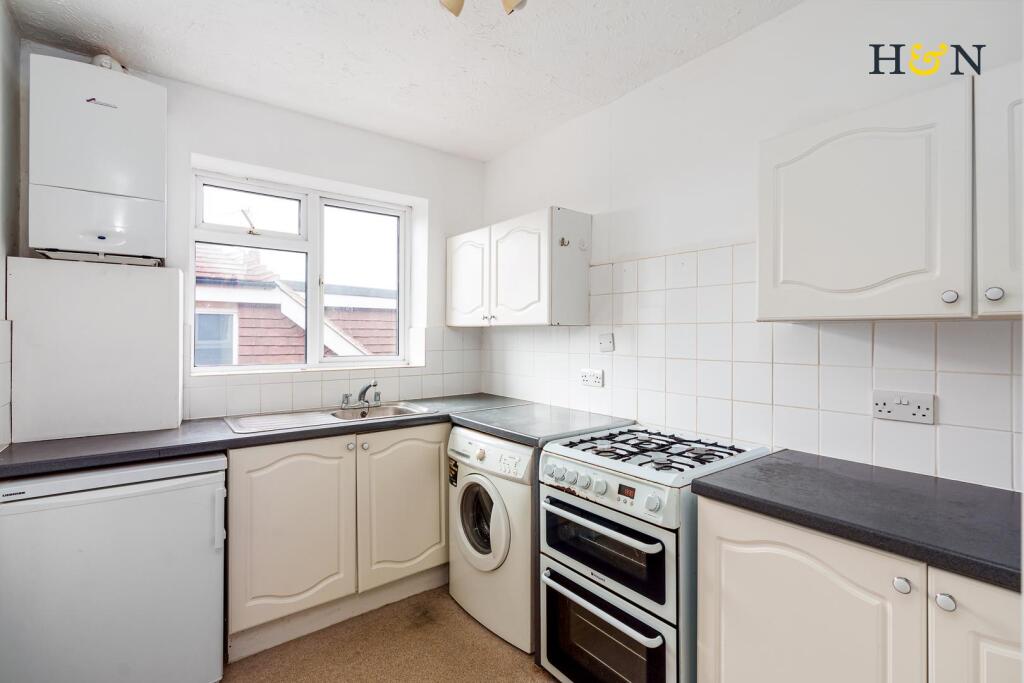 This is a one-bedroom flat located on Davigdor Road in Hove. The property is situated in a convenient location with access to transportation, schools, and local amenities. The flat itself is in fair condition, but it would benefit from some modernization, particularly in the kitchen and bathroom. The property includes a small garden and garages. The asking price of £285,000 appears reasonable given the location and size of the property.