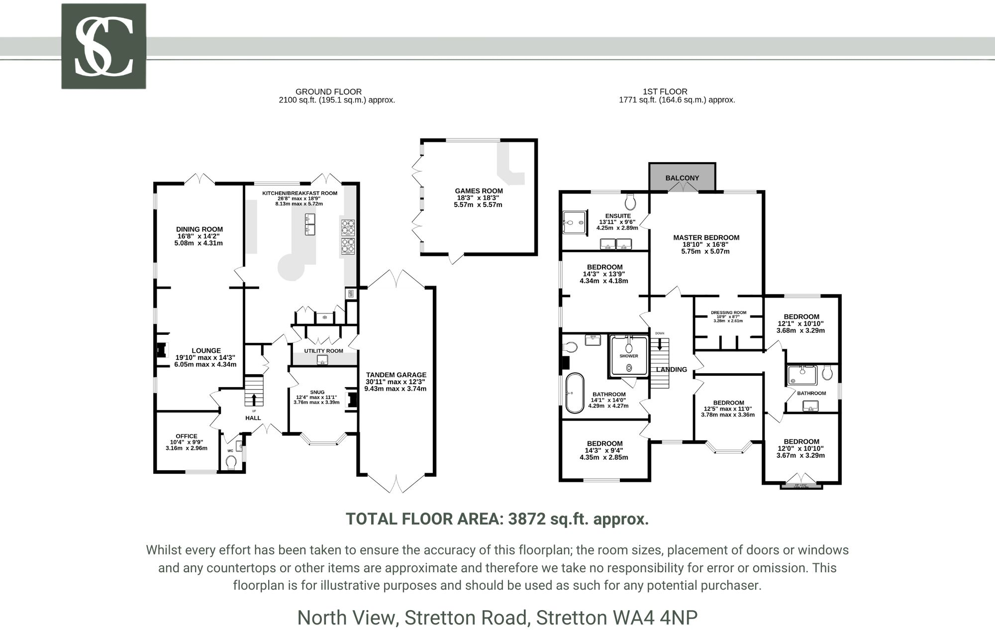 3872 square feet home with six double bedrooms and three bathrooms