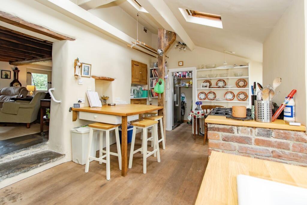 This is a charming detached period property located in the village of Tatworth, South Somerset. The house features three bedrooms and three bathrooms. While the square footage isn’t available, the property offers a generous garden with mature trees and a pond. The house retains many of its original features, including exposed beams and a thatched roof. While generally well-maintained, some aspects of the property could benefit from modernisation. Tatworth Primary School is nearby, making it suitable for families. The nearest train station is in Axminster, approximately 9km away. The asking price of £500,000 is higher than average for the area, but reflects the property’s unique character and desirable features.