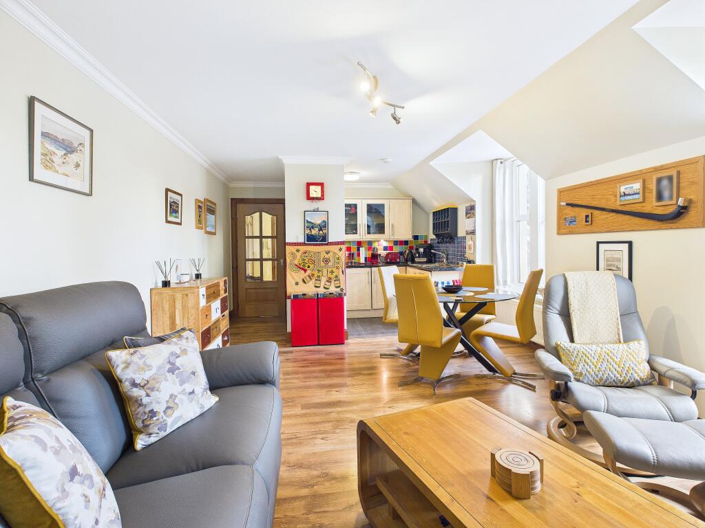 This is a one-bedroom apartment located on Main Street, Newtonmore. The property appears to be in good condition and benefits from a central village location with good transport links. The apartment is competitively priced compared to average property prices in the area.