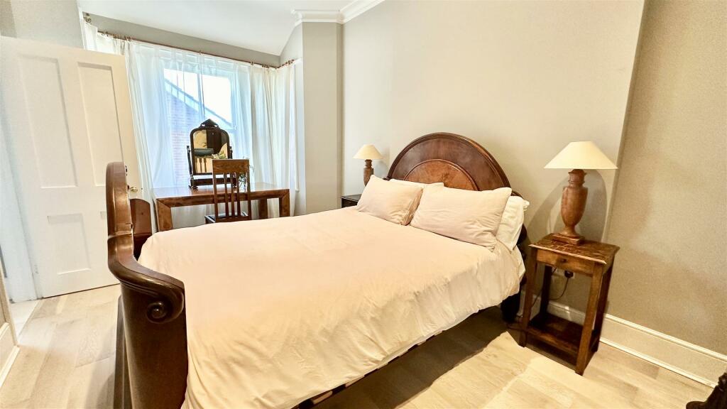Based on the provided images, the property appears to be a well-maintained period property. It exhibits features such as ornate fireplaces, high ceilings, and large bay windows, characteristic of older homes. The interior shows signs of recent renovation or modernisation, with a modern kitchen and updated bathrooms. The overall condition appears to be excellent. The property also has a sizable garden with patio areas, offering outdoor space.