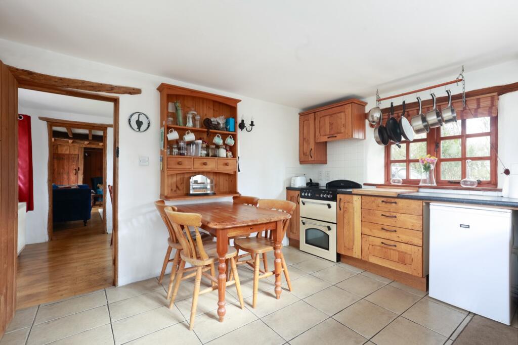 This property is a charming 3-bedroom detached house located in Barton St David, Somerset. The property benefits from a traditional style with exposed beams and character features, combined with some modern updates. The kitchen and bathroom appear to be recently updated. The property has a good-sized garden and is surrounded by open countryside. The location is peaceful and quiet, with several good primary schools within a reasonable distance. However, access to public transportation may be limited. The list price of £475,000 is slightly higher than the average price for the area, but comparable properties in the surrounding area are priced similarly or higher. The property appears well-maintained but may require some minor cosmetic updates depending on buyer preference. The property has a conservatory. The plot size is 1238.93 sqft.