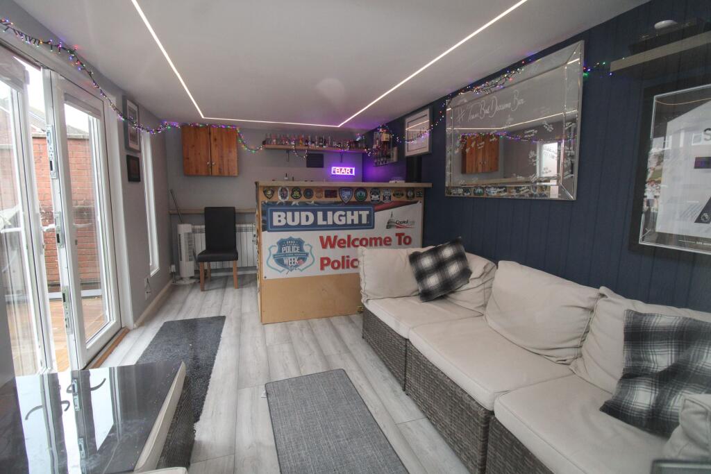 A well presented detached family home, comprising 4 bedrooms, lounge/dining room, a fitted kitchen, downstairs cloakroom, study & family bathroom/W.C. Driveway parking, front & rear gardens, summerhouse/bar in garden.