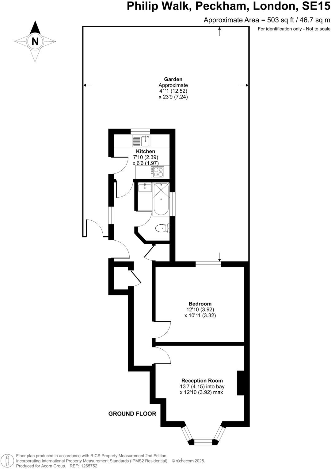 The property is a 1 bedroom, 1 bathroom apartment located on Philip Walk in Peckham, London. The apartment is 503 sqft and is listed at £425,000.