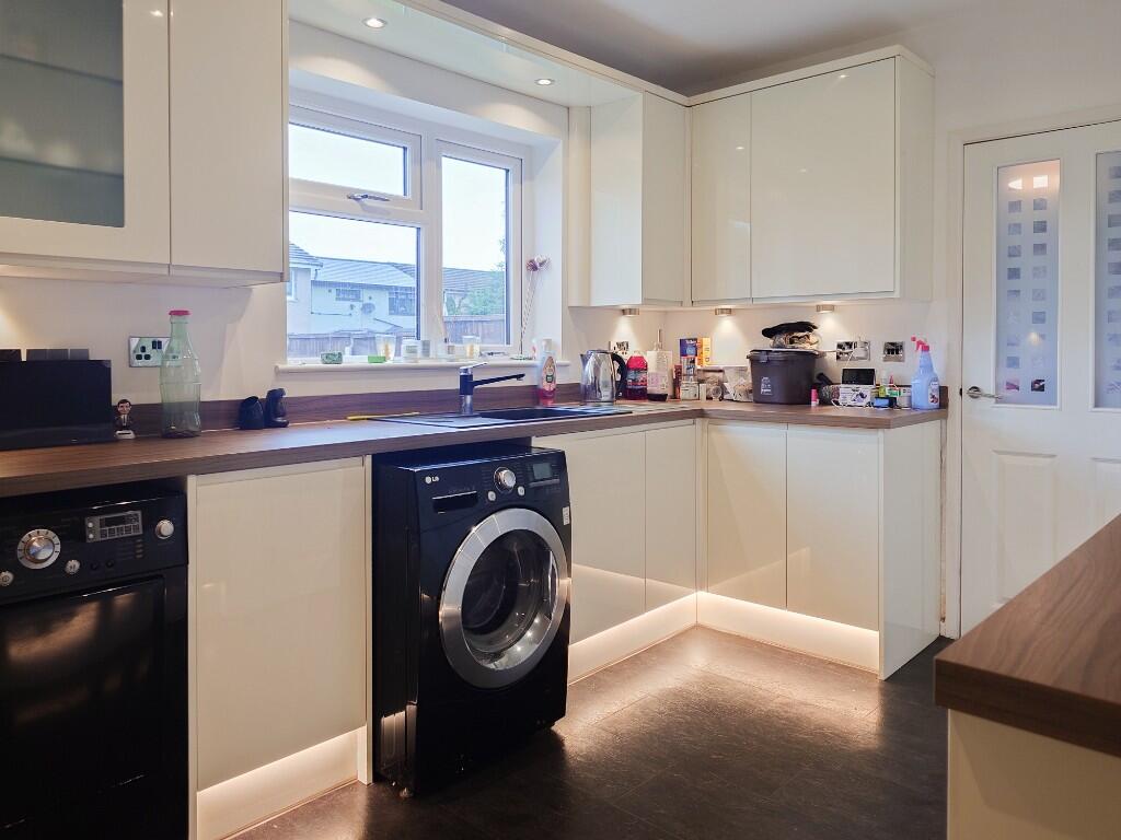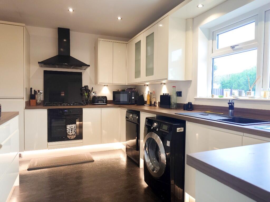 Including an outstanding contemporary kitchen with cabinetry in gloss white, this wonderful three-bed middle garden-terraced house forms part of an established residential area, within a few minutes' drive of the M67, Tesco, and the railway station.