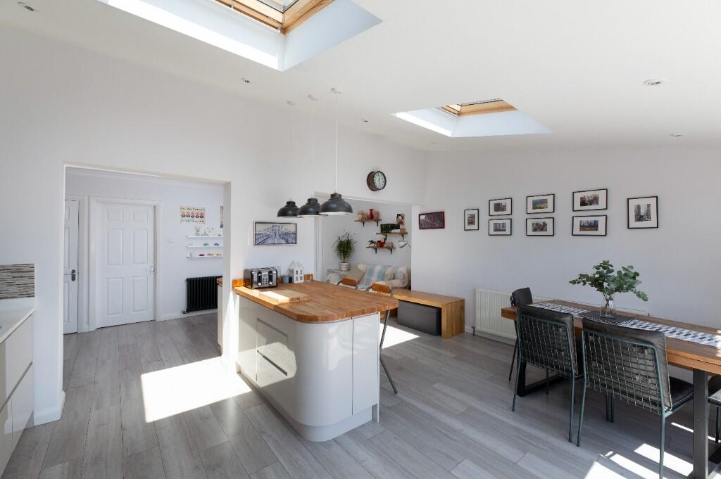 Based on the images, the property appears to be in excellent condition. It has undergone recent modernisation, with a contemporary kitchen extension and updated bathrooms. There is no visible evidence of disrepair or the need for significant renovation. The property benefits from a modern extension to the rear, adding significant living space and opening onto the garden.