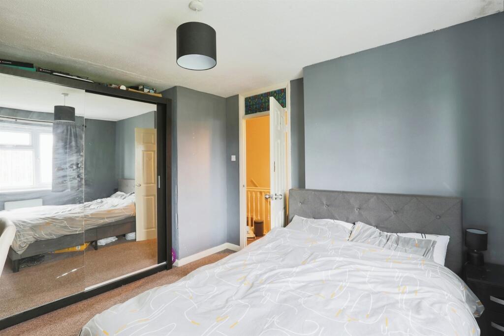 The internal images reveal a property that is habitable but in need of some updating. The kitchen and bathroom, although functional, appear dated and may benefit from refurbishment to enhance the property’s overall appeal. The living spaces are adequate but could benefit from more tasteful decorating or a fresh coat of paint. The house has a small garden that provides a degree of outdoor space.