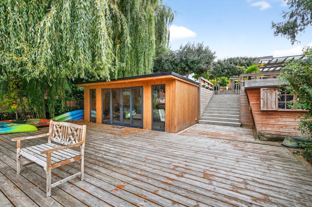 This is a detached property located on Lakeside, Bracknell. It features four bedrooms and three bathrooms. The property is in good condition, with a modern kitchen and bathrooms. It also has a large garden with a pond and summer house. Bracknell is a desirable area with good access to local amenities, schools, and transportation links. The property is conveniently located near Sandy Lane Primary School and Garth Hill College, both of which have ‘Good’ Ofsted ratings. Bracknell train station is also accessible. The property is listed for £1,150,000, which seems high compared to the average property price in the area of £328,333.