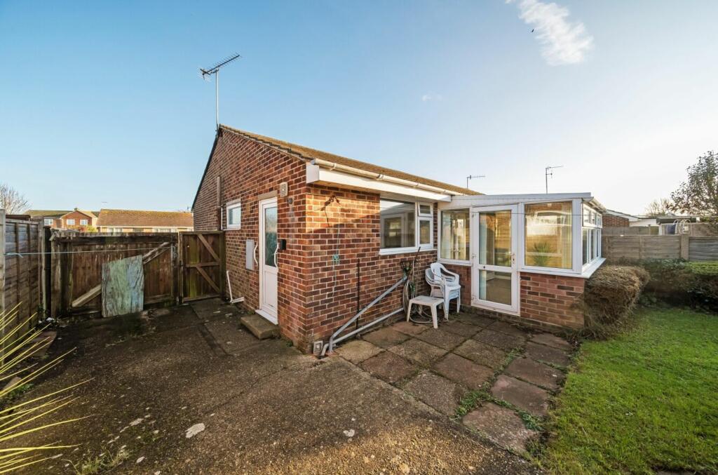 Two double bedrooms, living room with doors to conservatory, westerly facing garden, Close to beach, shops and on bus route. Driveway & detached garage. EPC-D, Council tax-C