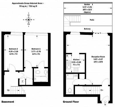 A smart and spacious split level apartment with two double bedrooms, two bathrooms and a private courtyard. The property is well presented with a large L-shaped reception room on the ground floor with direct access to the courtyard, separate kitchen and a bathroom. The lower floor has two generou...