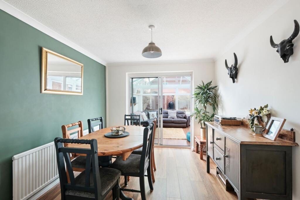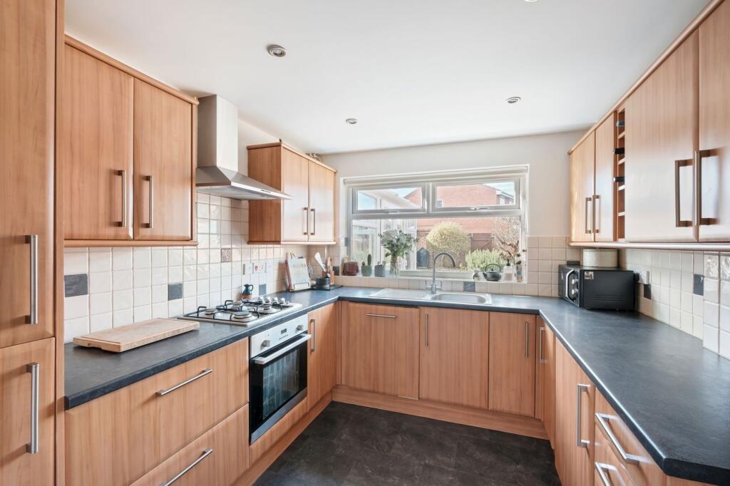 This four-bedroom detached family home is situated in the sought-after Warndon Villages, overlooking a tree-lined green.