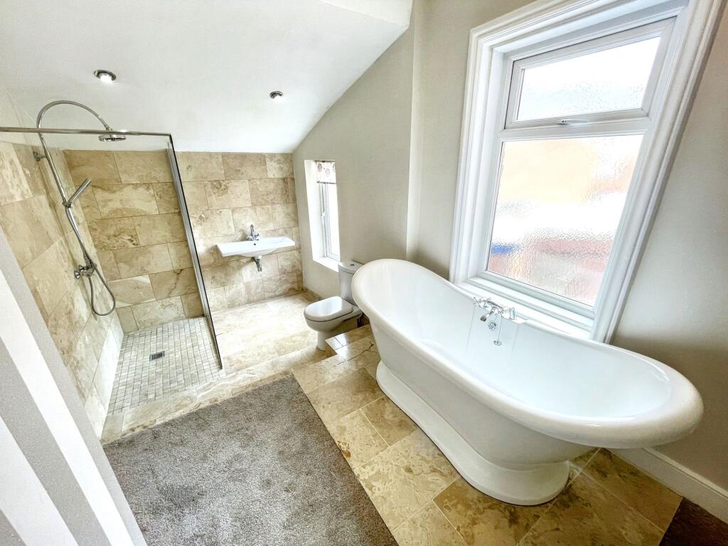 This is a three-bedroom terraced house on Mortimer Road, South Shields. The property benefits from a modern kitchen and bathroom, and has been recently refurbished with new carpets and paint. It is located within a residential area, close to local schools, including the ‘Outstanding’ Mortimer Primary School. The property has a small paved area at the rear. The listing price is £185,000.