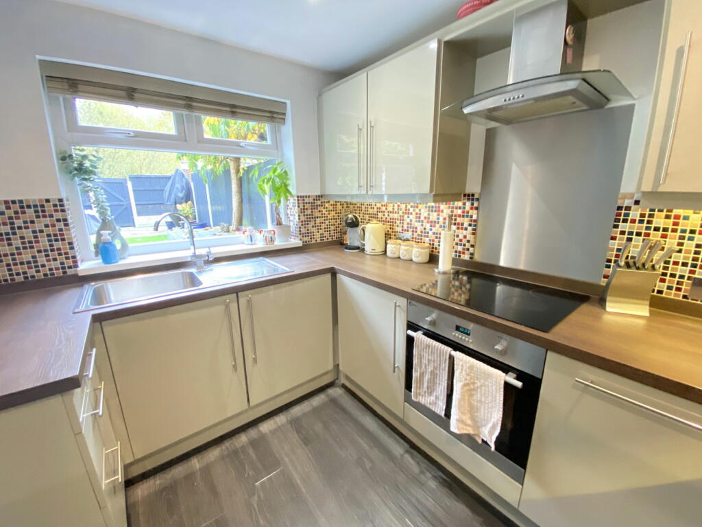 This three-bedroom mid-terrace house located at 4 Wetherby Drive, Royton, Oldham offers a comfortable family home. The property’s interior is presented in good condition and features modern updates in the kitchen and bathroom, demonstrating that the property has been well maintained and cared for. The image shows a relatively recently updated interior with contemporary finishes and design choices. The kitchen and bathroom are especially noteworthy, appearing modern and well-equipped.