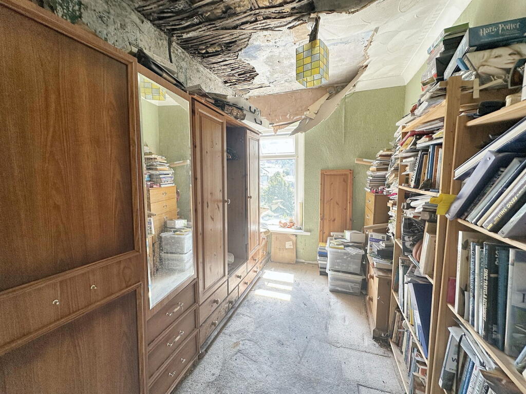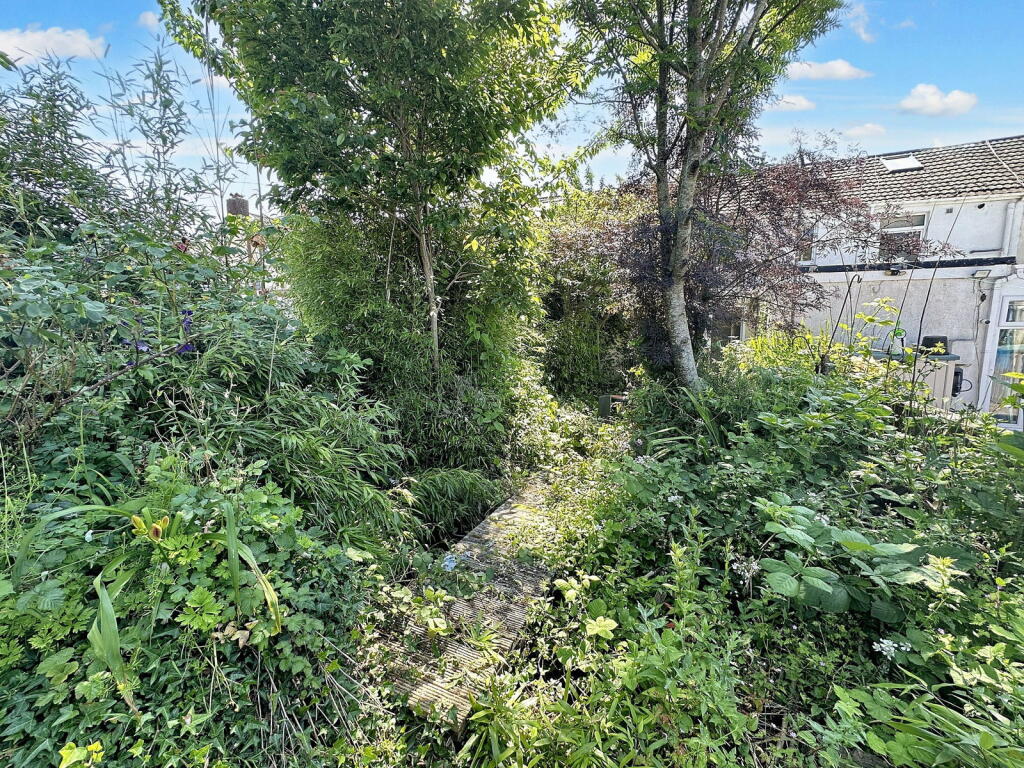 This is a three-bedroom terraced house in Resolven, Neath. The property requires significant renovation and the garden is overgrown. The listing price is lower than the average for the area, reflecting the condition of the property.