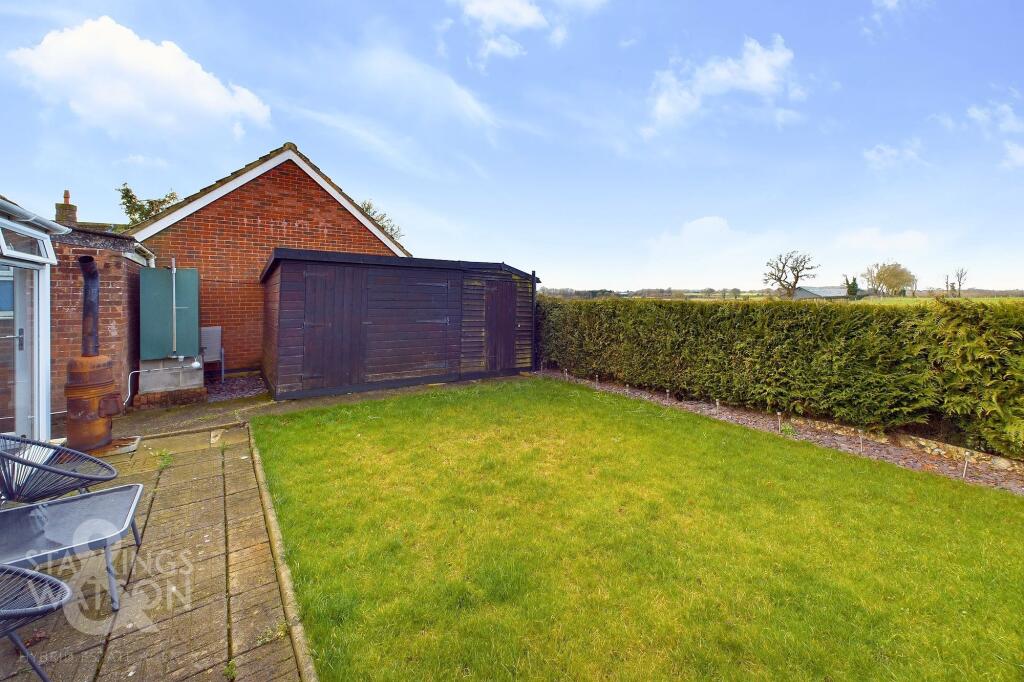 This property is a 2-bedroom, 1-bathroom bungalow located in Pulham Market, Norfolk. Based on the provided images, the property appears to be in good condition, with a modern kitchen and bathroom. There is a good-sized garden, and off-street parking. The location is a quiet village, with a primary school nearby. However, there is limited information on local pricing to accurately assess the list price.