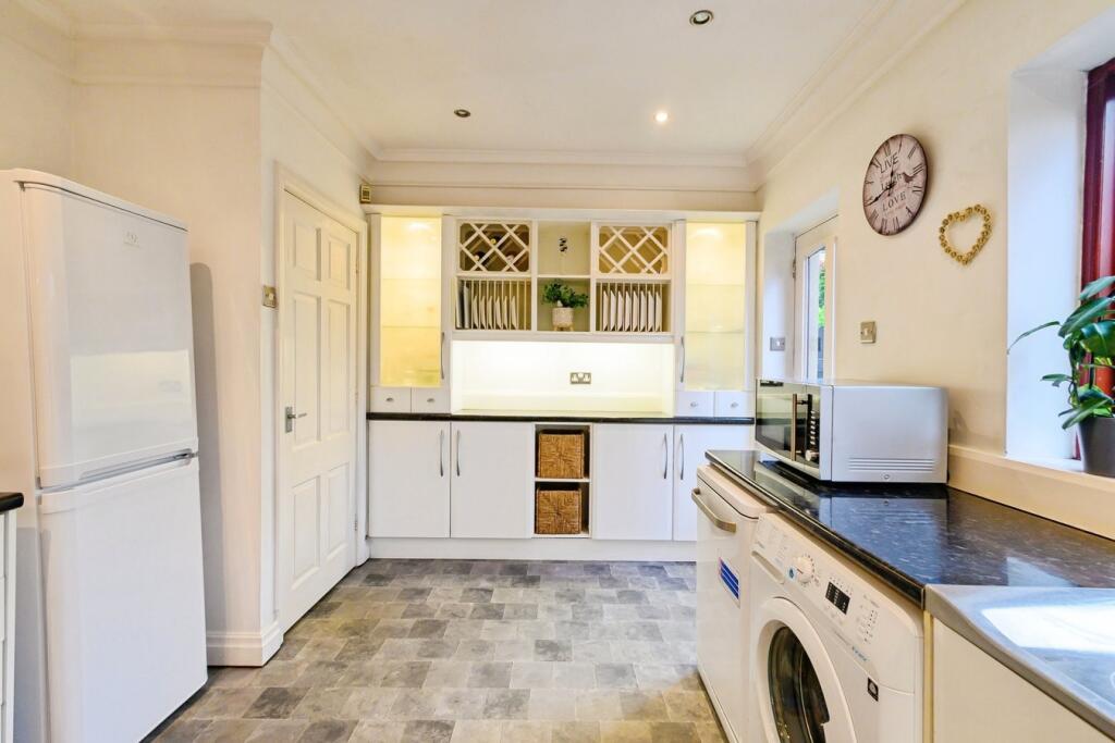 This is a detached property located in Norden, Rochdale. It features 5 bedrooms and 2 bathrooms. The property appears to be well-maintained and includes a modern kitchen and bathrooms. A conservatory adds extra living space and connects the interior to the large garden. The location is desirable due to the proximity to good schools, but it is relatively far from public transportation. The price may be slightly high compared to other properties in the area.