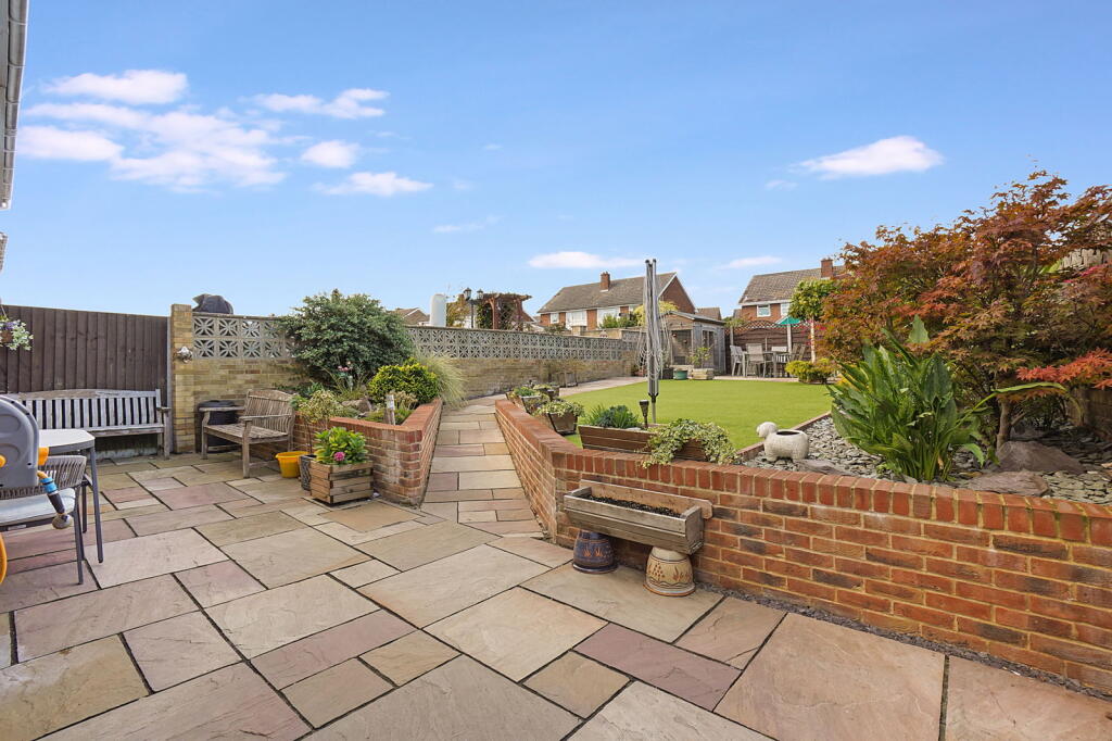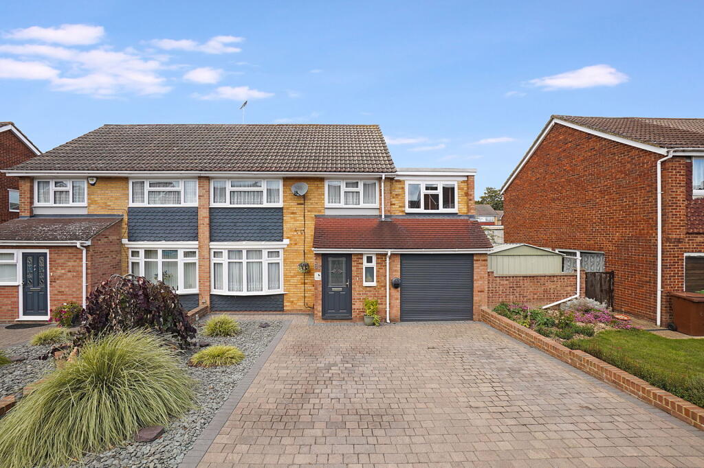Beautiful four bedroom semi detached family home with off street parking, garage and landscaped garden with summerhouse, ideally situated on the outskirts of Sittingbourne, close to transport links and amenities. Blending comfort and style for modern family life.