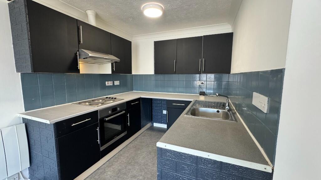 Newly decorated throughout, second floor two bedroom flat, situated in this purpose built block with allocated parking space. Located in the town centre with easy access to mainline station and bus services. Brand new shower room, new vinyl to the kitchen and bathroom, spacious lounge.
