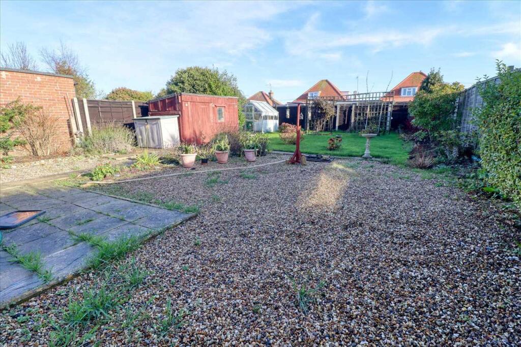 This is a two-bedroom bungalow located on Nottingham Road in Holland-on-Sea. The property is in a residential area and is close to local schools and amenities. The property itself is in fair condition, but would benefit from some modernisation. It features a garden with a shed and greenhouse. The property is listed for £300,000, which is below the average price for properties in the area.