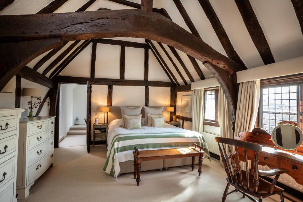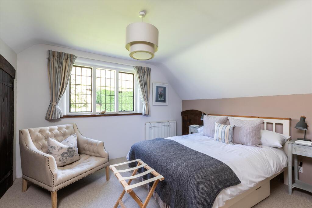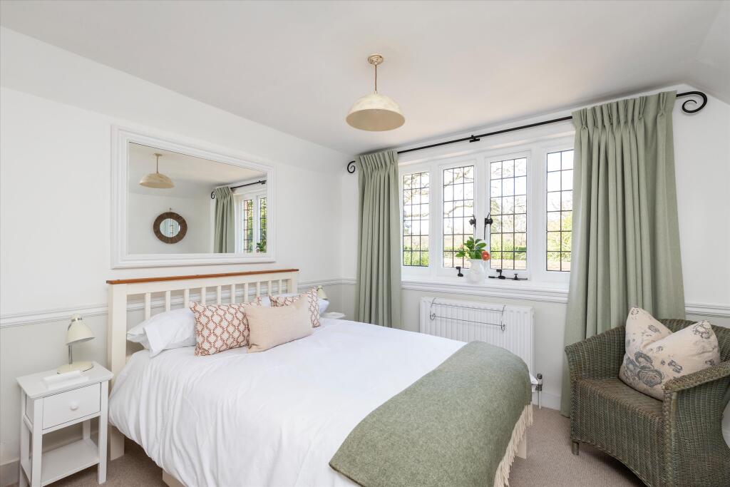 The location is highly desirable, situated in a peaceful village setting yet within easy reach of local amenities and transport links. The nearby town of Godalming offers a wider range of shops, restaurants, and services. Good schools are also within close proximity. The proximity to railway stations providing access to London adds to its appeal.