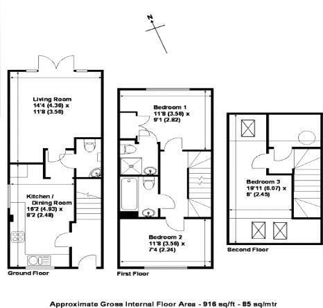 This three-bedroom end-of-terrace house in Byfleet, Surrey, presents a potentially appealing option for families or commuters. The property’s interior is modern and well-presented, suggesting it’s either newly renovated or well-maintained. The kitchen and bathrooms appear updated with contemporary fittings. The photos show a comfortable living space and what appears to be a functional office space in the loft conversion. A small, enclosed garden provides a modest outdoor area.