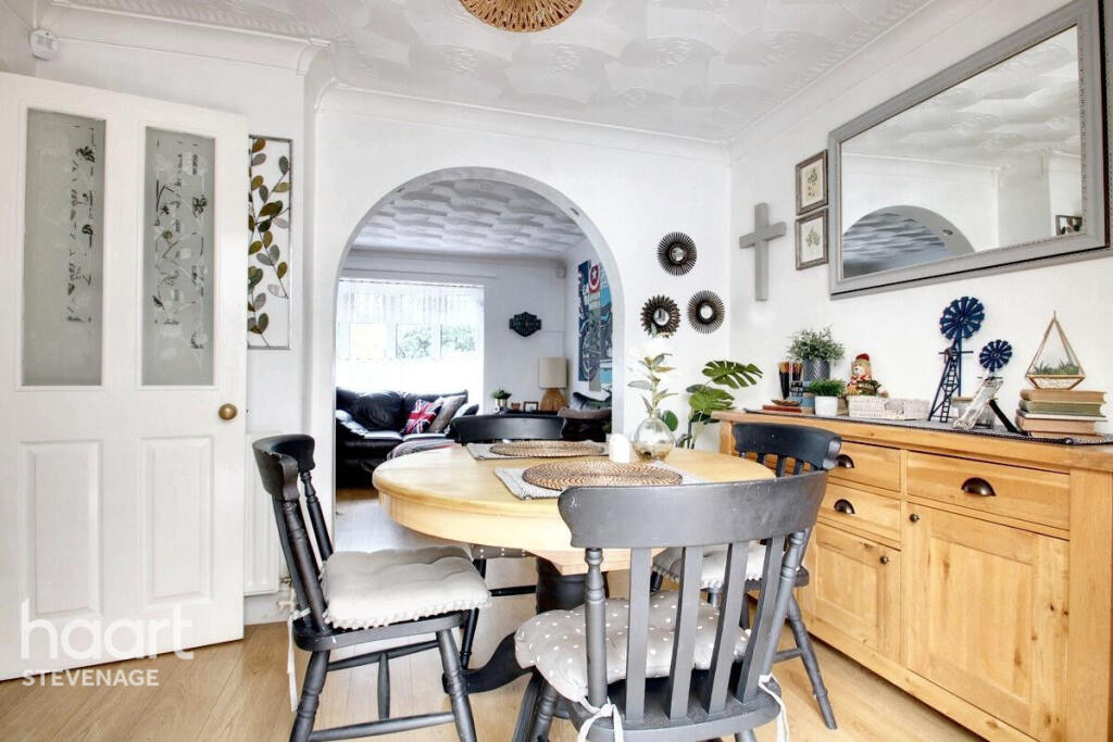 This is a three-bedroom terraced house located on Wood Drive in Stevenage. The property offers 1,197 sqft of living space and includes two bathrooms. It features a good-sized garden with a shed and patio area. While the property appears to be in reasonable condition, some areas, like the kitchen and bathrooms, could benefit from modernization. The location is convenient, with several schools nearby and transportation links within a few kilometers. The asking price of £375,000 seems reasonable given the property’s size, location, and features.