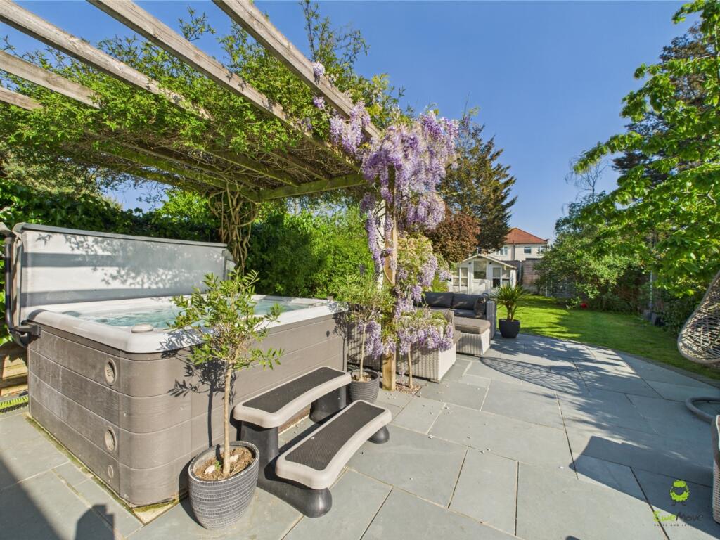 Bostall Park Avenue is located in the West Heath area of Bexleyheath, Kent. The property is a semi-detached house with four bedrooms and two bathrooms. While the square footage and plot size are not provided, the images show a well-maintained property with a significant garden, including a patio area and hot tub. The location benefits from proximity to several schools, with options ranging from \‘Good\’ to \‘Outstanding\’ Ofsted ratings within a reasonable distance. Bexleyheath train station is also relatively close, providing convenient access to Southeastern rail services.