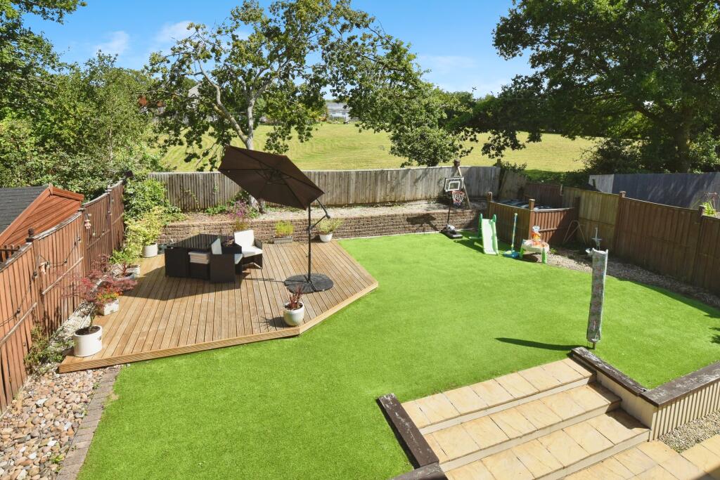 A detached property in Llanelli, Carmarthenshire featuring 4 bedrooms, 2 bathrooms, and 1,840.63 sqft of living space. The property includes a garden with a decked area. The house appears to be in good condition, with a modern kitchen and well-maintained bathrooms.