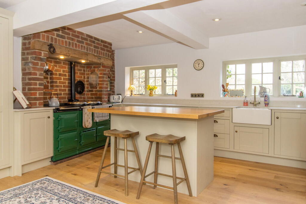 Rose Cottage is a charming 5-bedroom, 2-bathroom thatched cottage situated in the desirable village of Cheriton, near Alresford in Hampshire. The property boasts a wealth of character features, including exposed beams and brickwork, and has been lovingly updated to provide a comfortable and modern living space. The kitchen is a particular highlight, featuring a stunning Aga range cooker and ample storage. The cottage also benefits from a good-sized garden, providing ample space for outdoor living and entertaining. The location is excellent, with a highly-rated primary school within easy reach and other amenities in the nearby town of Alresford. While the list price is higher than the average for the area, the unique character, size, and condition of the property justify the premium. The property appears to be in excellent condition, having undergone tasteful renovations that have retained its period charm. The plot size is also larger than average for the area.