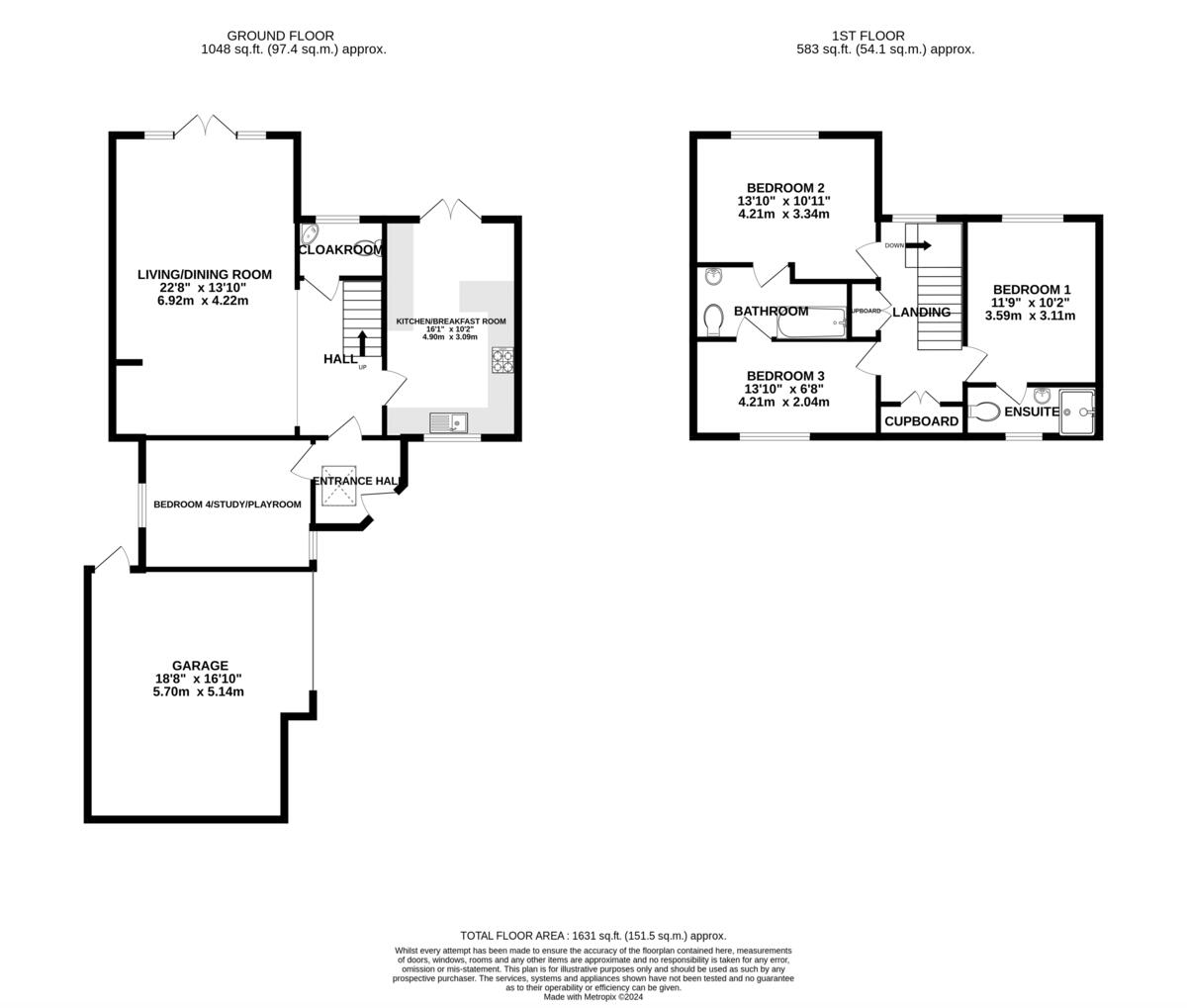 The property is located in Nursery Gardens, Chichester, West Sussex. It is a 4 bedroom, 2 bathroom house with 1,111.68 sqft of living space and a 1,631 sqft plot. The property is in excellent condition and has been recently renovated. It benefits from a modern kitchen and bathrooms. The location is excellent, with good schools and transport links nearby. The price is slightly above average for the area, but given the condition and location, it is a reasonable price.
