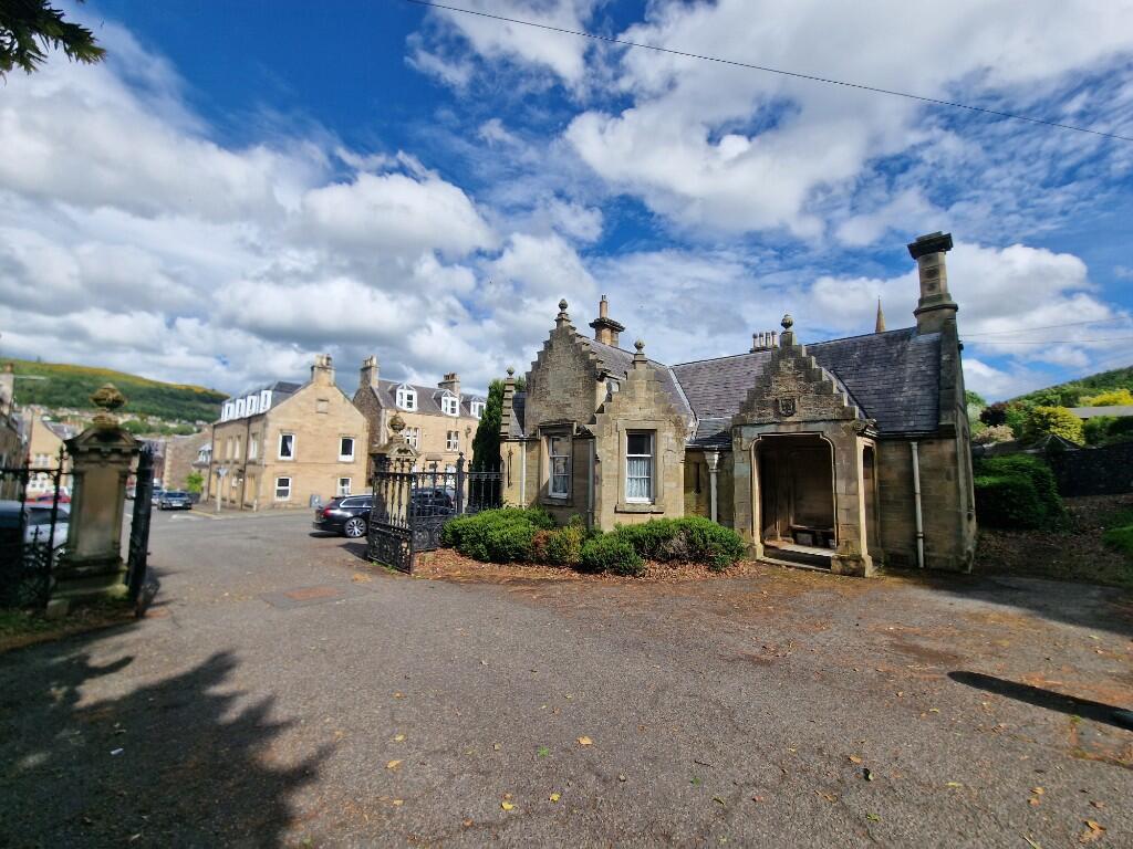 Scott Park Lodge is a charming, detached, single storey property of unique historical and architectural interest, located at the entrance to Scott Park in Galashiels. Dating from 1881 and built in the Baronial style, this 'Category C Listed' gatehouse offers approximately 70m² of internal accommodat