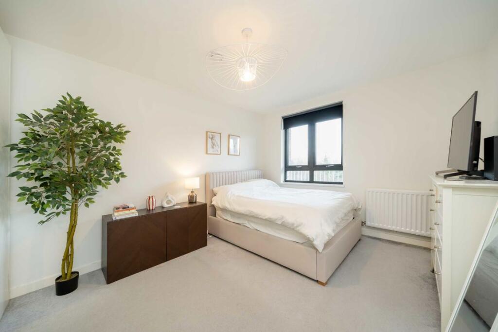 This is a modern flat in Acton, offering three bedrooms and two bathrooms. The interior is well-maintained, with a modern kitchen and bathrooms. The property benefits from a patio area and is located near transportation links and schools. The price appears competitive for the area, making it an attractive option for potential buyers.