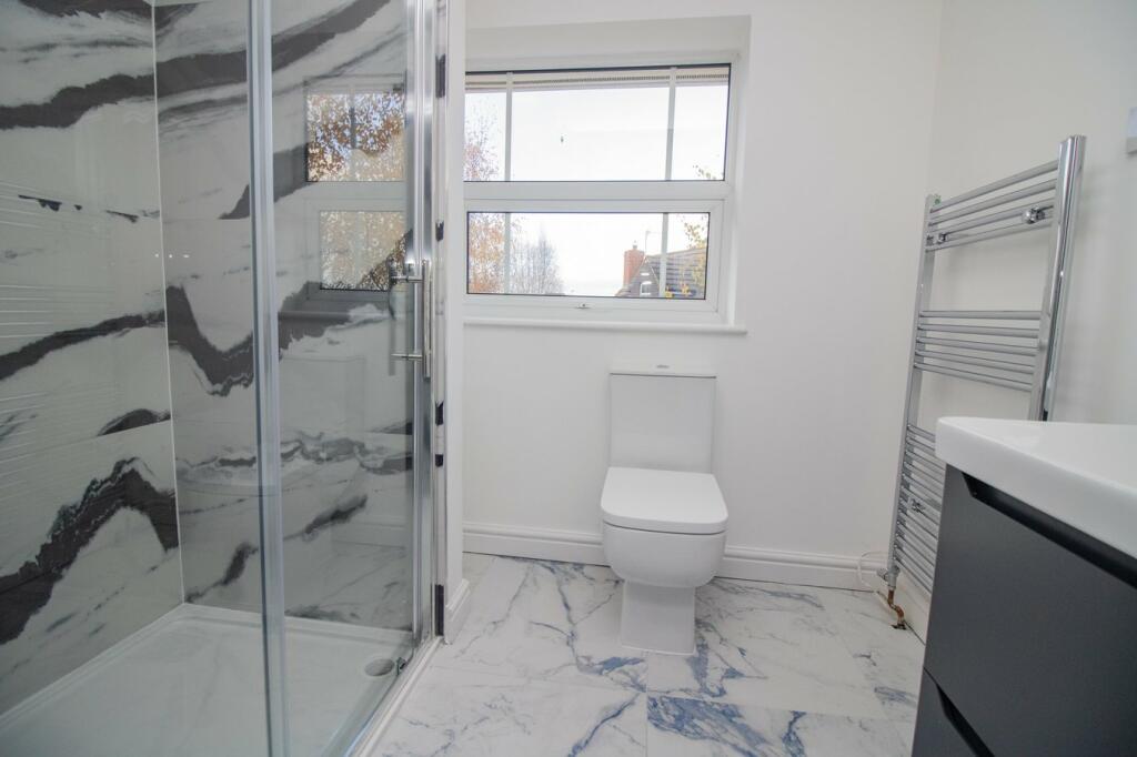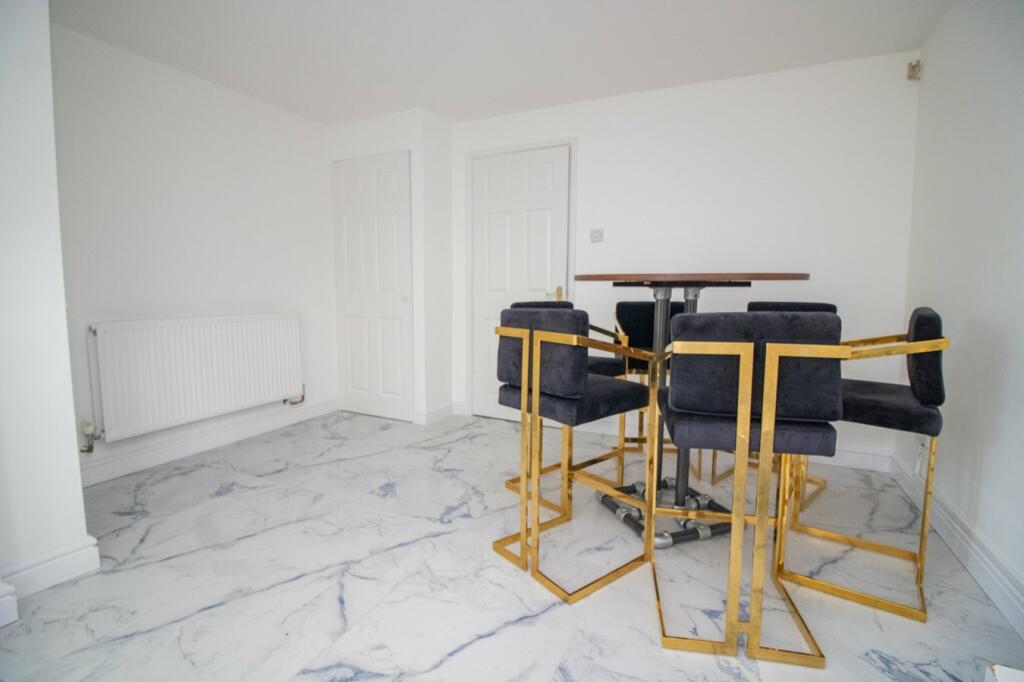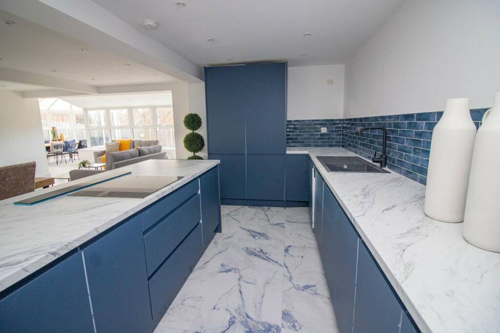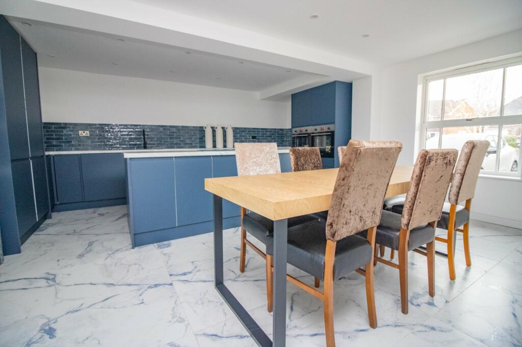 The property is a 4-bedroom house located in Bushby, Leicester. The location benefits from being relatively close to several primary schools, including Fernvale Primary School which has a good Ofsted rating. The proximity to Syston and its East Midlands Railway connection provides convenient access to other areas. The property itself appears to be in excellent condition. The images showcase a recently renovated interior with modern fixtures and fittings, a contemporary kitchen, and updated bathrooms. The house also features a conservatory, which adds to the living space and provides additional natural light. The property includes a garden, although its size is not explicitly large.