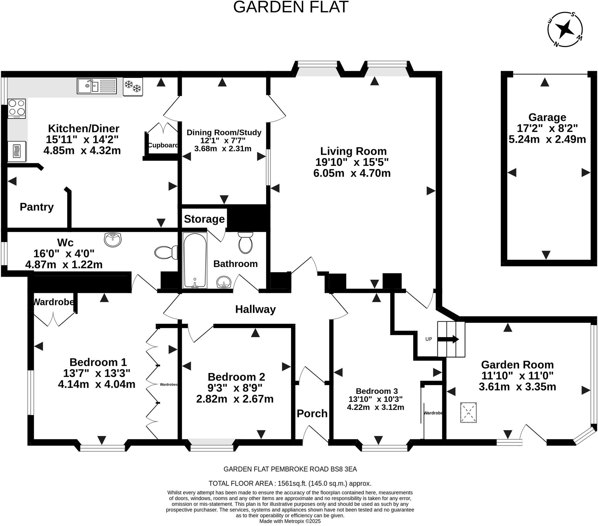 A particularly spacious 3 double bedroom garden flat with private entrance, single garage and secure off-street parking space, set within a fine detached building on Pembroke Road. No onward chain.