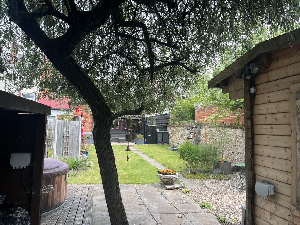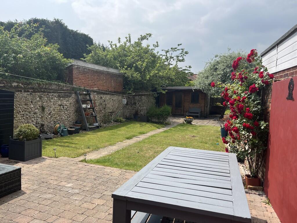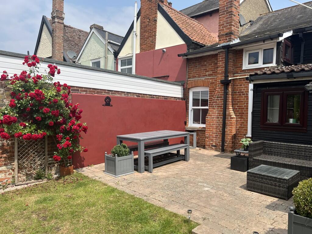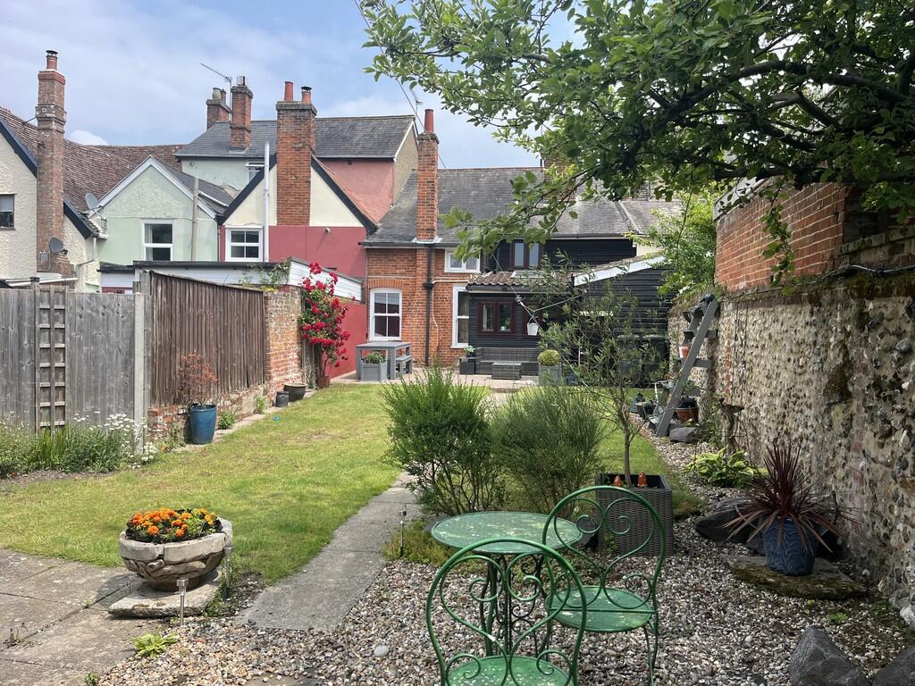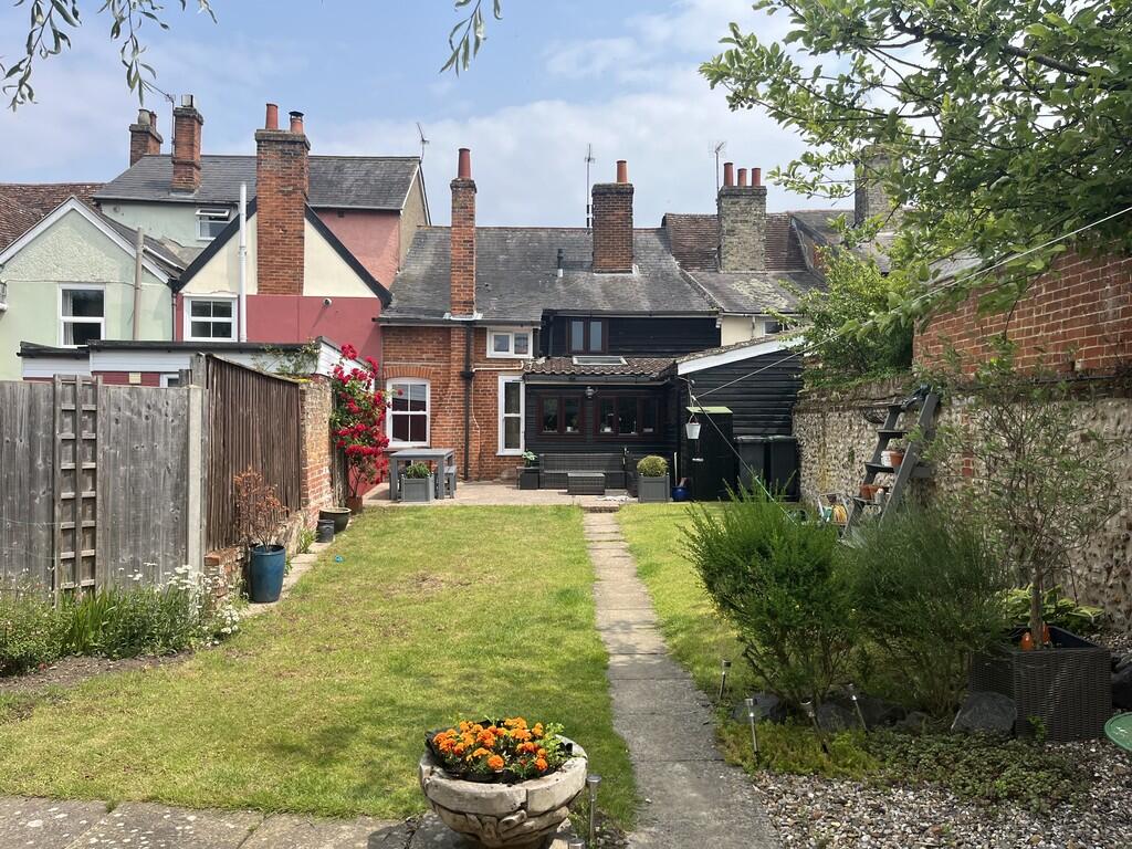 A spacious & characterful three double bedroom town house, located on Needham Market´s historic High Street & with predominately south-facing rear gardens, extensive off-road parking & detached outbuilding.