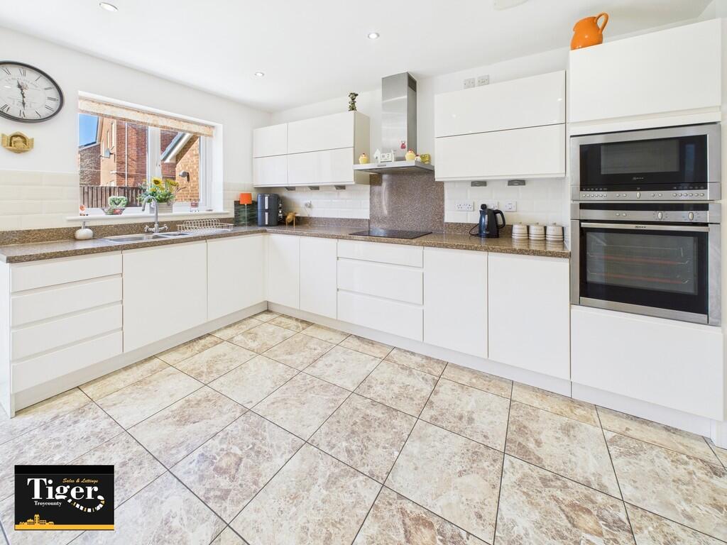 This stunning four double bedroom executive detached house is located in a sought after residential cul de sac in an enviable position overlooking a grass area with park 100 yards away. The home has a modern yet classical appearance with column entry to a large hallway with three reception rooms...