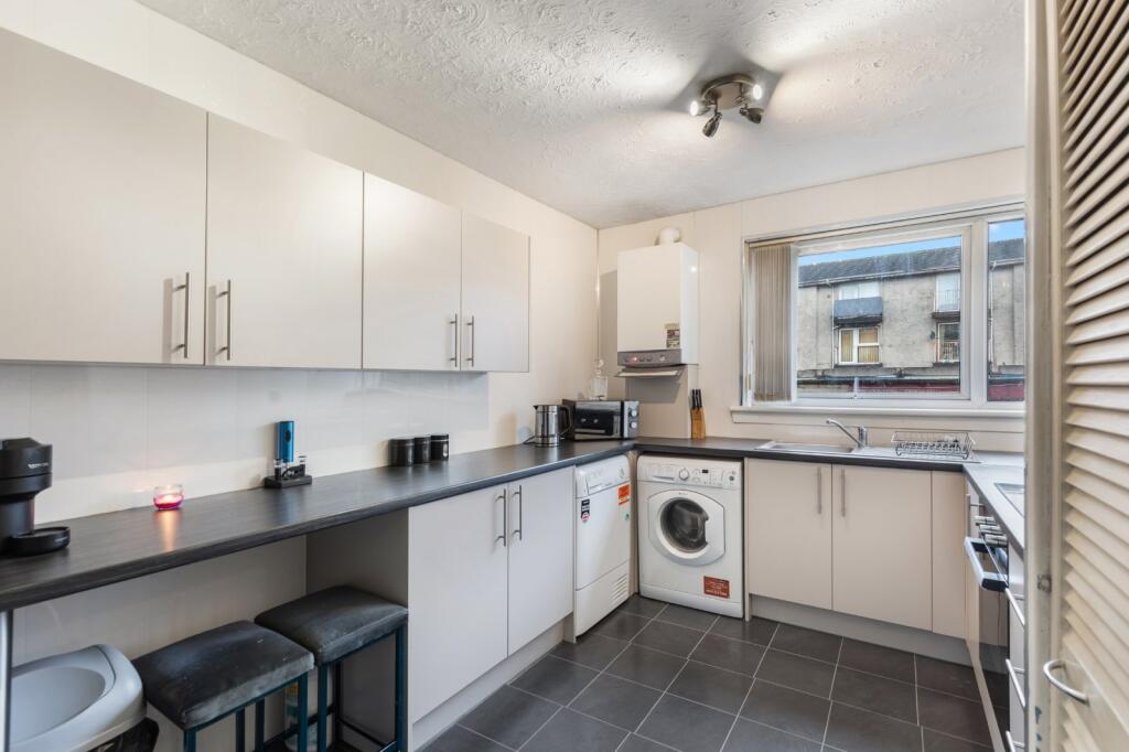 This is a two-bedroom apartment in Renfrew. The interior features a modern bathroom and a functional kitchen. While the building’s exterior appears dated, the apartment itself seems to be in decent condition. The communal garden area is a minimal outdoor space. The location offers good transport links and local amenities. The asking price of £80,000 appears reasonable compared to other properties in the area.