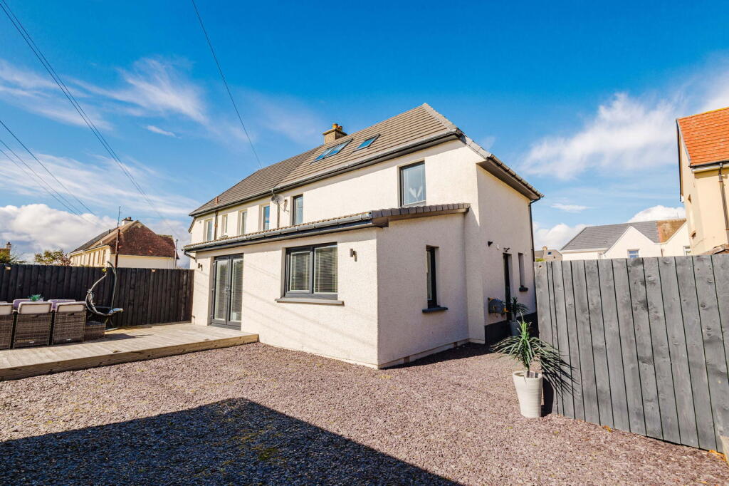 This is a four-bedroom semi-detached house in Troon, South Ayrshire. The property is in good condition and has been modernised throughout. It benefits from having three bathrooms, a modern kitchen, and a well-maintained garden. The property is located in a residential area and is close to local amenities and transport links. The property is conveniently located near Barassie and Troon train stations, offering easy access to Glasgow and other destinations. Additionally, Prestwick International Airport is within close proximity, making it ideal for frequent travelers. Overall, this property presents a fantastic opportunity for families seeking a comfortable and well-connected home in a sought-after location.