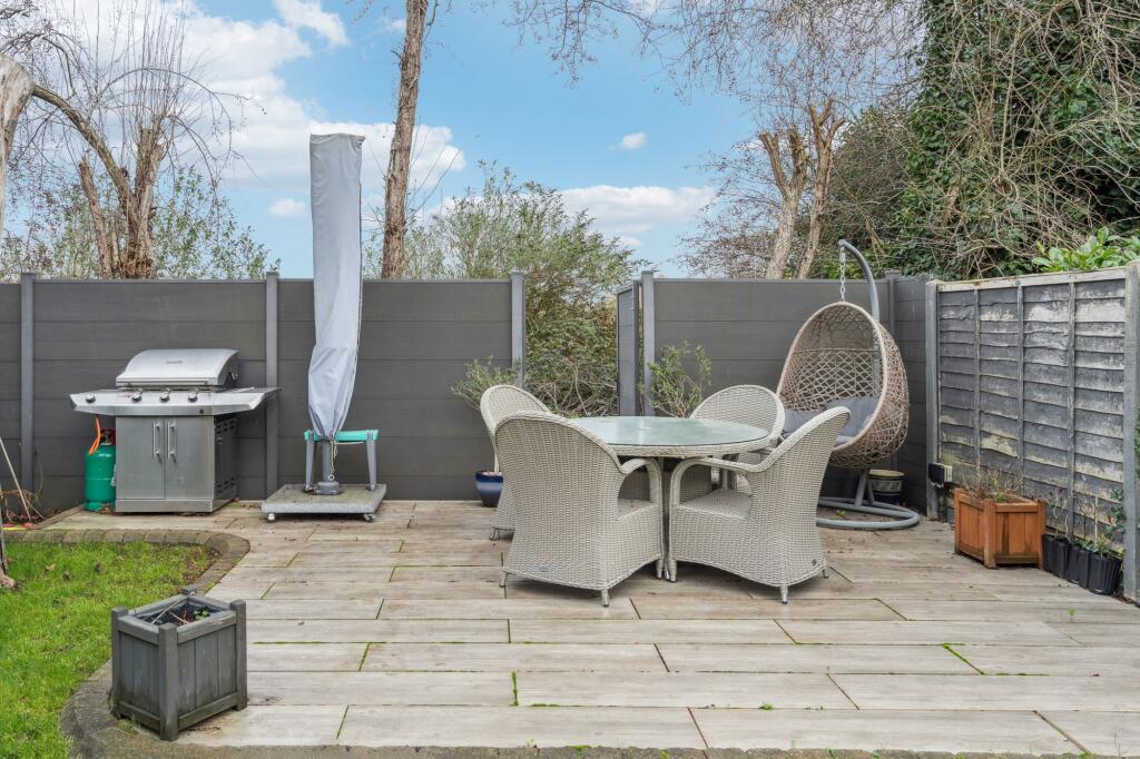 This is a four-bedroom terraced house located on Lindsey Road in Denham, Buckinghamshire. The property features two bathrooms and a garden with a patio. The interior appears to be modern and well-maintained. The location offers good access to schools and transport links. The asking price is slightly above the average for the area.