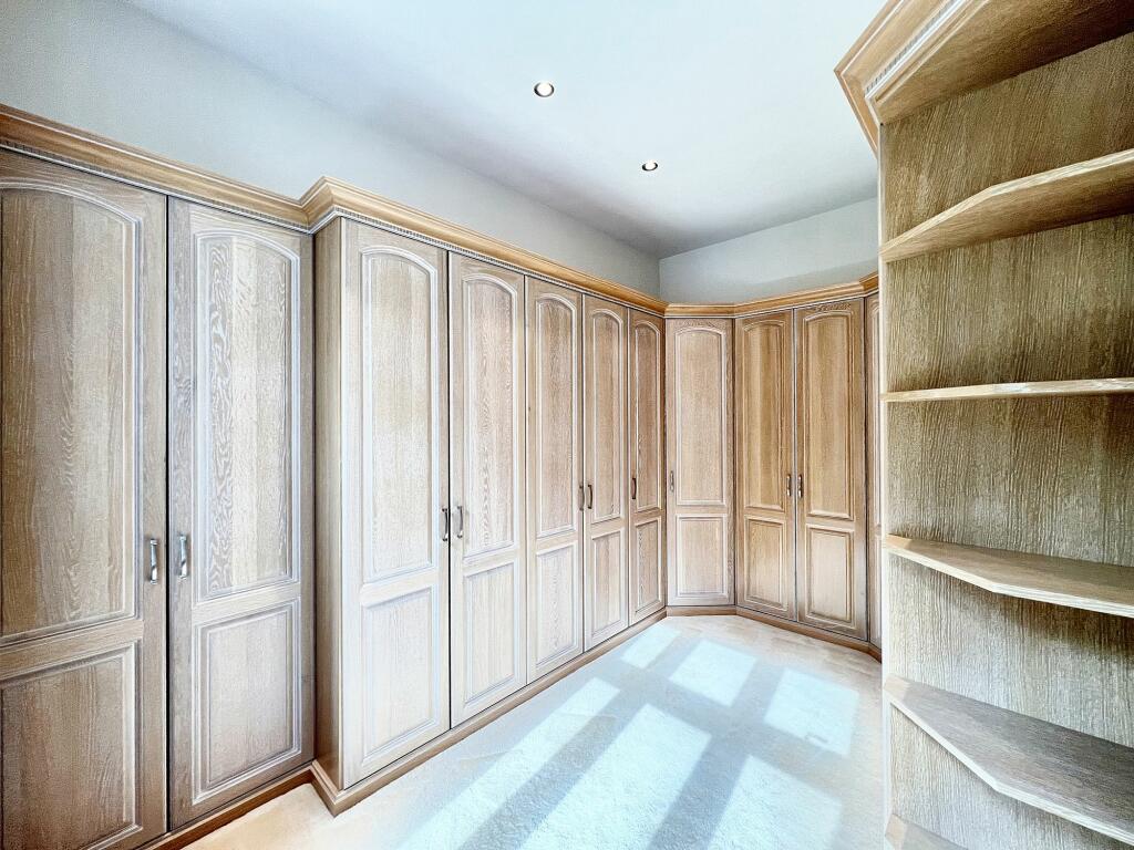 This four/five-bedroom, four-bathroom detached family home located in the prestigious Woodcote Estate of Purley, Croydon, presents a compelling proposition for discerning buyers. Boasting just under 4,000 square feet of living accommodation spread over two floors, the property’s substantial size immediately stands out. The interior, as shown in the high-quality photographs, is impeccably presented, with modern fixtures and fittings, creating a comfortable and luxurious living space. A large kitchen with ample cabinetry, a formal dining area, and several generously sized reception rooms offer plenty of space for both family life and entertaining. Multiple bedrooms, each well-appointed, provide comfortable accommodation for family members. The inclusion of multiple bathrooms further enhances the property’s convenience. Externally, the property benefits from a considerable garden with a patio suitable for al fresco dining and a tranquil water feature. The mature landscaping and well-maintained grounds add to its curb appeal. The location itself is key, situated in the desirable Woodcote Estate, offering access to excellent schools and relatively easy access to transport links. While price per square footage is unavailable from the given data for a precise valuation, the asking price aligns reasonably with other properties of similar size and standing in the immediate vicinity. The property is likely to appeal to families looking for a spacious, well-maintained home in a prime residential area.