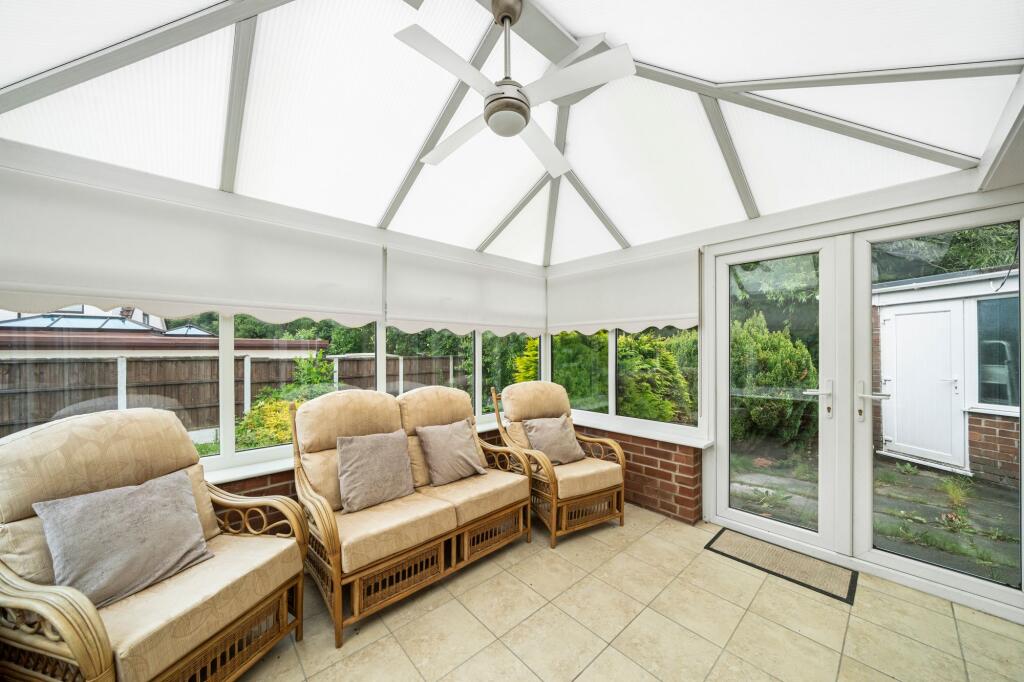 Expansive bungalow in peaceful cul-de-sac with large plot, driveway, garage. 2/3 bedrooms, modern kitchen, living room with fireplace, conservatory.